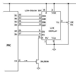 wires (four data, RS, ENable) plus power, ground, and contrast voltage.