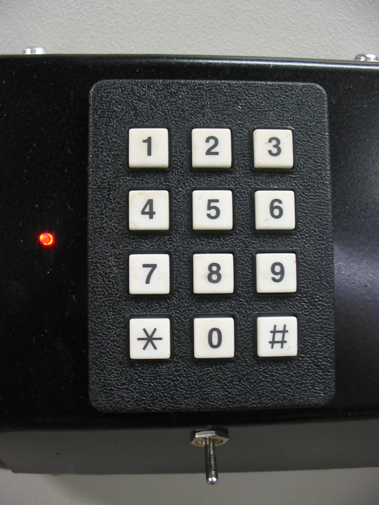 The initial combination is "123456". Regardless of any immediately prior key sequence, when that correct key sequence is entered and completed, the lock solenoid is actuated for 1.5 seconds. If a key isn't pressed for two or more seconds, the firmware resets to again look for the first digit. CaveatsSince this circuit is battery powered, some way is required to turn on the battery when needed. I used a toggle switch below the keypad to accomplish this, but more innovative methods would be more elegant. For instance, one could employ some sort of mechanical cover over the keypad whereby lifting the cover would actuate the switch to connect the battery. If the microprocessor, etc, is located on the outside of the safe, it won't be as secure as one might think, because all one would need to do to gain access would be to remove the front panel and apply 6VDC to the wires of the internal lock solenoid. To make it more secure one could bury the microprocessor and FET device inside the door, but if there was a failure you'd have to cut open the safe to gain access! ![]() Click on photo to display full size version. Technical ReferenceHARDWARE